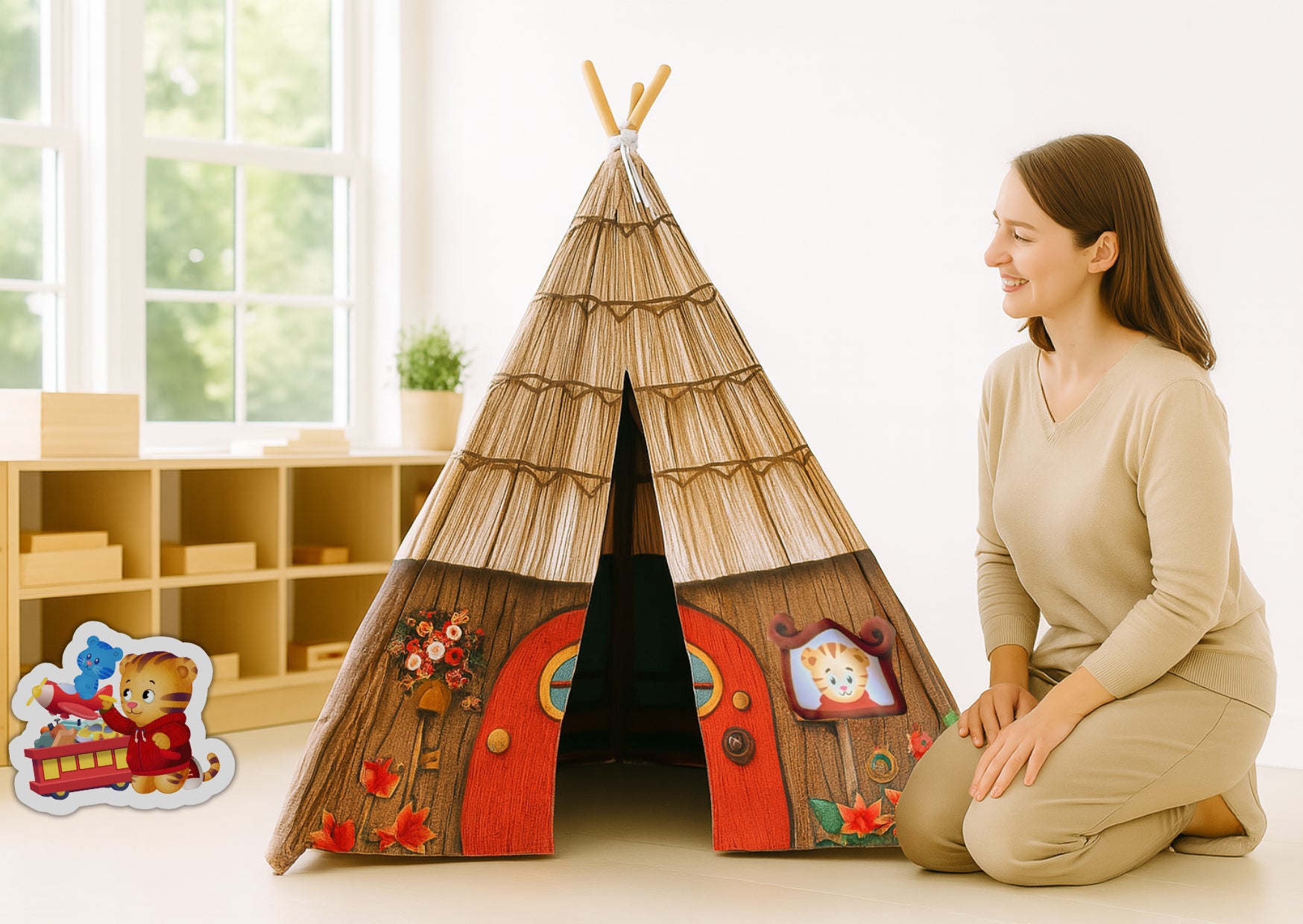 The Daniel Tiger’s Neighborhood x Pitch A Fête StoryTent™ fits seamlessly into the places where children already play, rest, and grow.