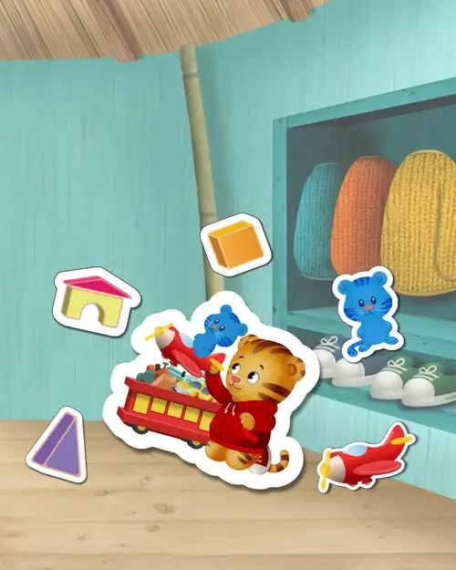 Modeled after Daniel’s own toy chest, this soft pillow opens to reveal plush pieces—like Tigey and his favorite blocks—for story-rich, screen-free adventures.